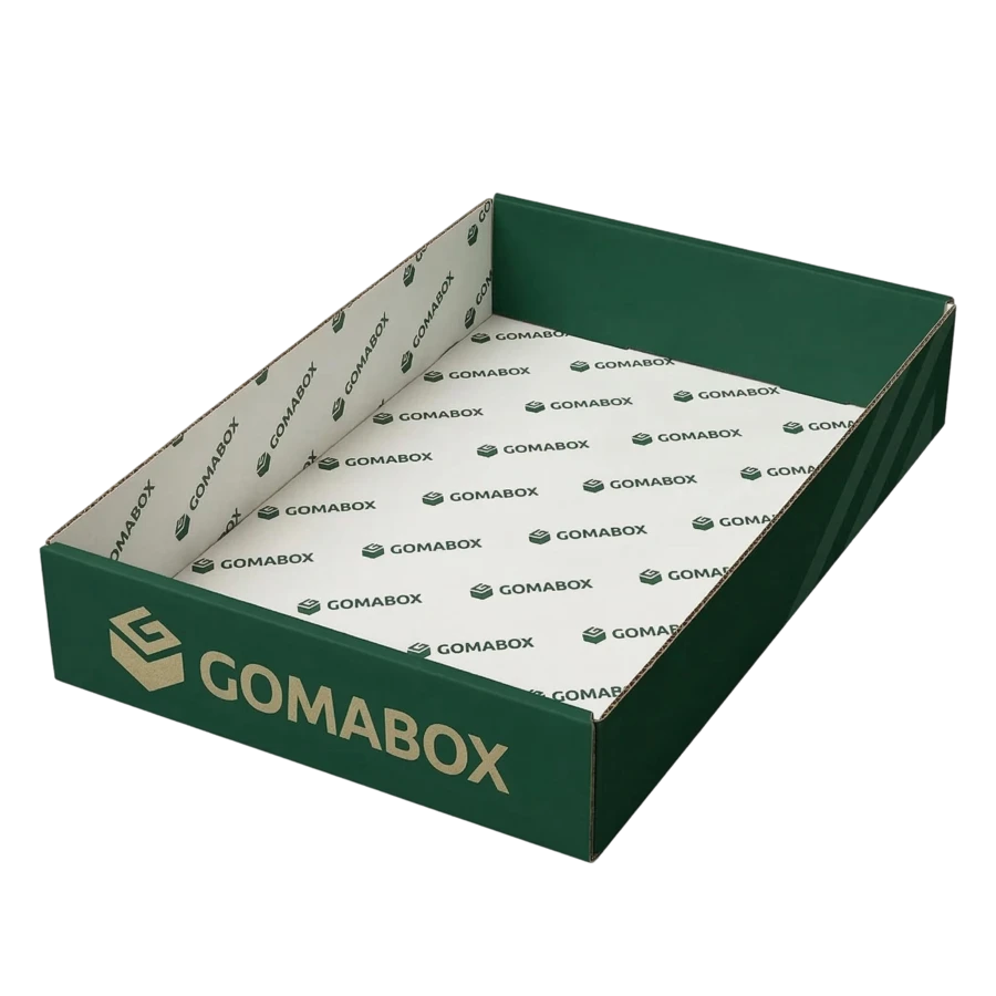Bei GOMABOX fertigen wir Trays mit individuell abgestimmten Wellpappenqualitäten und präzise ausgeschnittenen Konstruktionen, die eine gleichbleibende Formgenauigkeit und Haltbarkeit in jeder Serie gewährleisten. Je nach Anforderung setzen wir ein- oder doppelwandige Wellpappe ein und passen die Tragfähigkeit an das Gewicht der verpackten Ware an. Optional ist Flexodruck verfügbar — für die Kennzeichnung mit Logo, EAN-Code oder Produktinformationen.