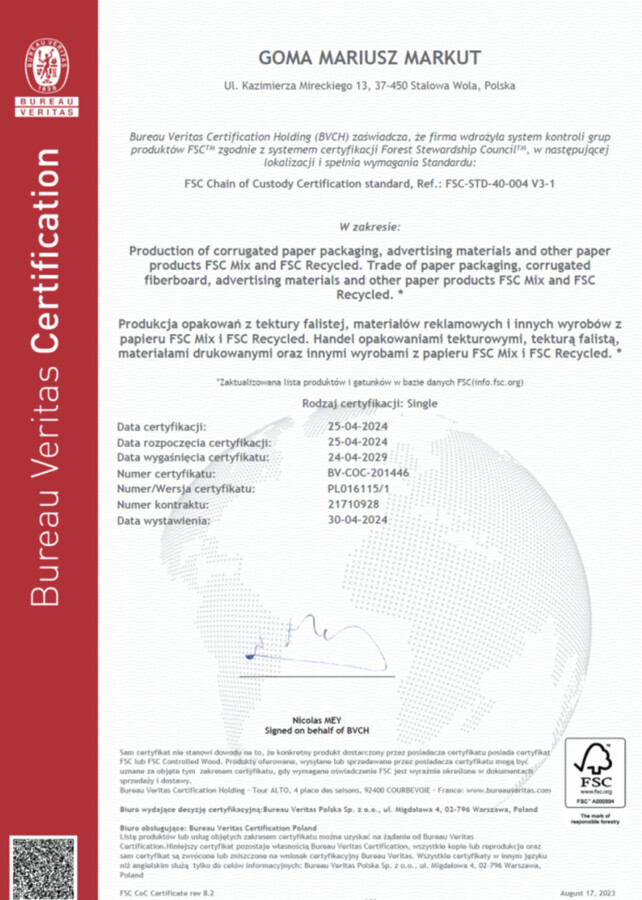 Für unsere Kunden bedeutet dies, dass sie Verpackungen mit dem FSC®-Siegel wählen können, was die Glaubwürdigkeit der Marke erhöht und die nachhaltige Entwicklung fördert.
