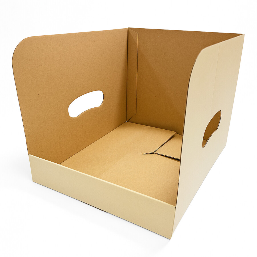 Łączą w sobie funkcję opakowania transportowego i ekspozycyjnego – umożliwiają transport zbiorczy, a po zdjęciu górnej części pełnią rolę estetycznego stojaka lub tacki prezentacyjnej.